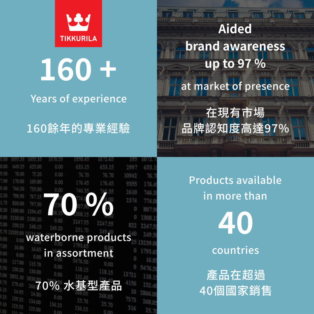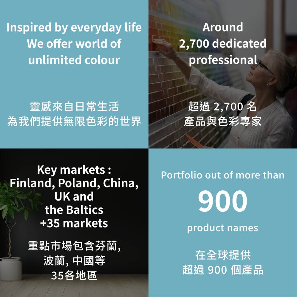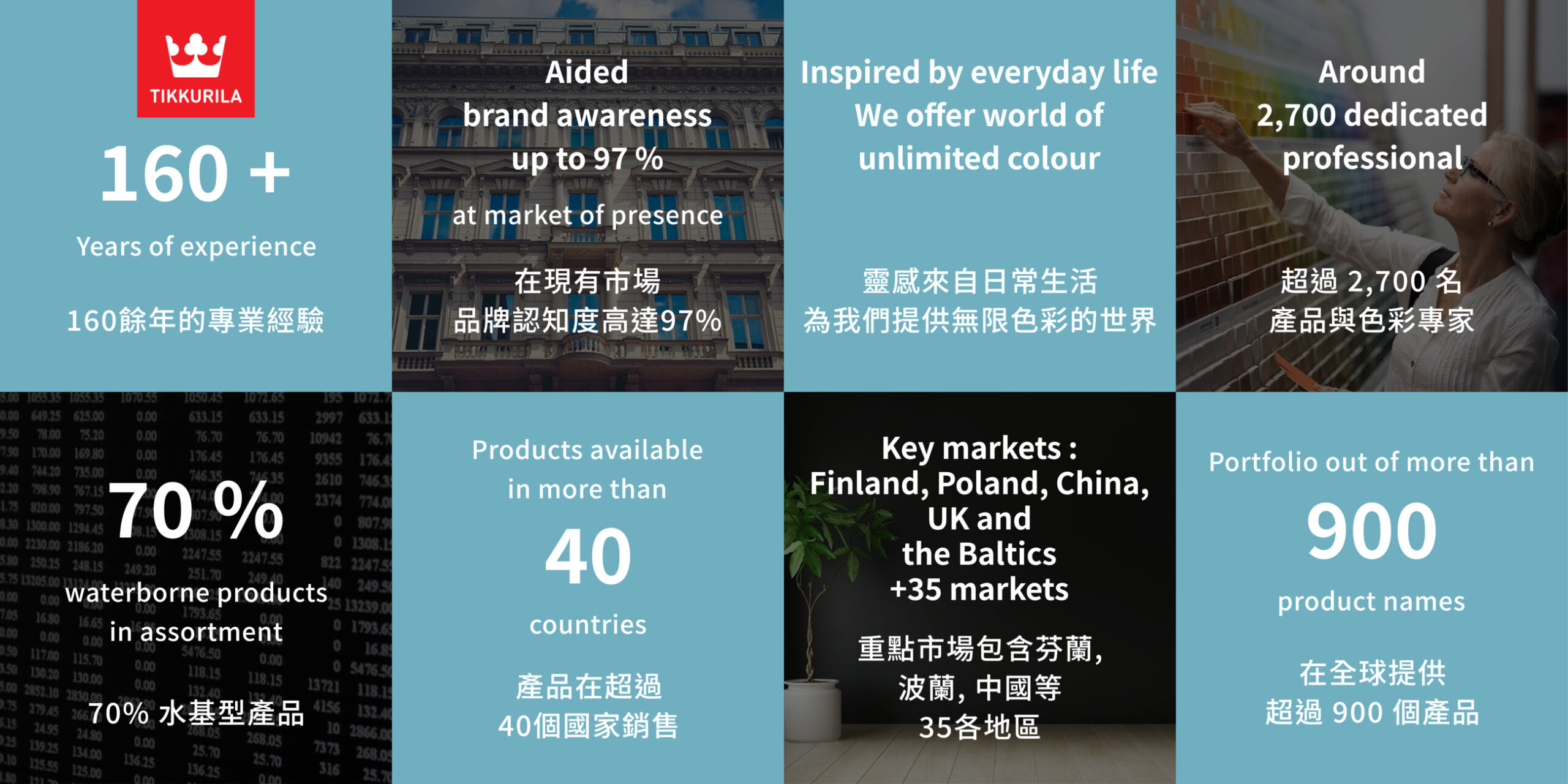 芬琳漆 自1862年起,始終如一 品牌故事 PPG是全球領先的塗料與特殊材料企業,擁有百年歷史與創新技術。旗下涵蓋建築、工業、汽車與防護塗料,致力於提供高效、環保、耐久的塗裝解決方案。 TikkuriIa 芬琳漆160餘年的豐富經驗 1862 一家榨油作坊建立在位於芬蘭萬塔–迪古里拉的 Keravanjoki河邊 1920s 1919年,迪古里拉正式開始生產塗料,在20年代開始著力發展市場行銷和客 戶培訓的工作 1950s 1953年迪古里拉推出了首款水性漆產品——約克(Joker),在設計師 Yki Nummi的指導下,迪古里拉開始了色彩服務 1960s 通過瑞典進入斯堪的納維亞市場。2001年收購了Alcro-Beckers後確立了領導地位。迪古里拉的調色技術被引進 1970s 迪古里拉進入前蘇聯現俄羅斯市場, 並在 2006年收購了Kraski Teks公司,使其成為俄羅斯領先的裝飾塗料公司 2000s 2002年中國電子進出口總公司將芬琳漆引入中國,並成立北京中電芬琳裝飾材料有限公司作為中國區代理,2007年迪古里拉全資收購代理公司,並成立中國分公司 2010s 迪古里拉在 Nasdaq Helsinki 上市 2020s 迪古里拉被PPG收購,並於2021年從Nasdaq Helsinki下市。 2022年迪古里拉迎來了160歲生日。 芬琳漆的家鄉芬蘭–全球最環保的國家極致純淨與自然之國 我們的油漆誕生在世界最純淨的土地上以芬蘭標準打造出不污染居家的環境友好塗料 芬蘭人是世界上最幸福的國民 芬蘭連續七年被評為「世界最幸福國家」,芬蘭人也是「世界上最幸福的人」 「最幸福國家」榜單的考量標準有六個,分別為:居民收入、自由度、信任度、預期健康壽命、社會福利和對他人的慷慨度 芬蘭非常安全,丟了的錢包和手機還能完璧歸趙,這樣的國家在全世界屈指可數,而芬蘭就是其中一個。無論是白天還是夜晚,在大街小巷和公園行走都很安全。